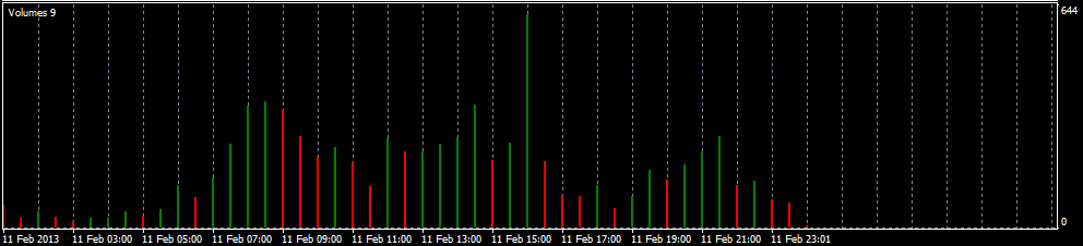 If you did check the Volumes Indicator Properties , you may have noticed a third object called VAL. This property cannot be used like this: vol(VAL)!. The VAL property is used in two member comparison conditions, since you may want to extract the value from the bars rather than knowing if they are green or red, up or down. The following configuration can be a valid example of that we are talking about: